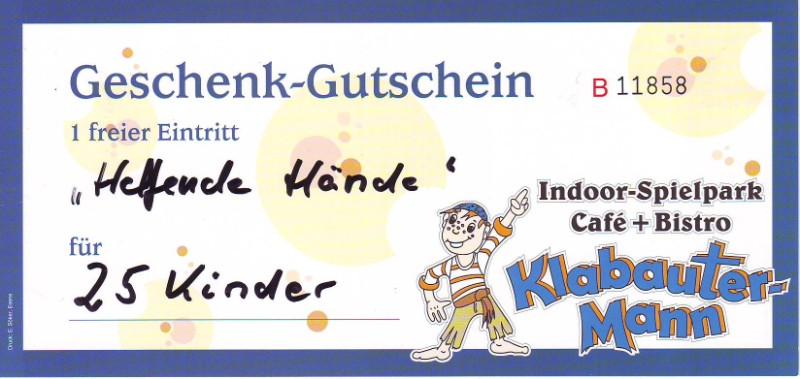 Am 9. Dezember 2012 fand im Indoor-Spielpark Klabautermann, Esens eine Fundsachenversteigerung zugunsten des Sozialen Kaufladens Esens statt.