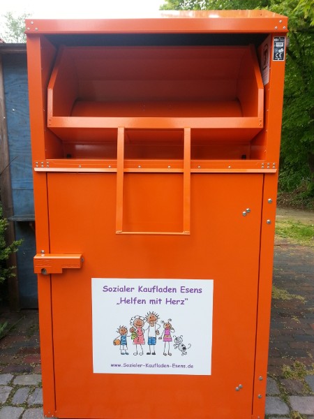 Altkleidercontainer neben dem Laden