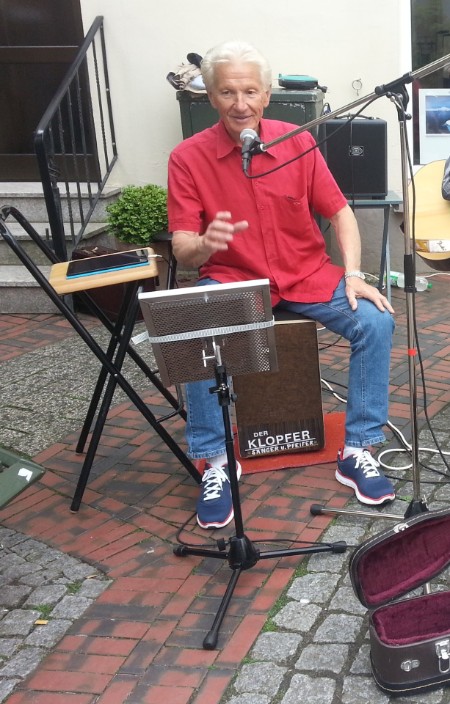 Strom für die Musikanlage erhielt der Solist kostenlos vom Goldschmied Oliver Peters.