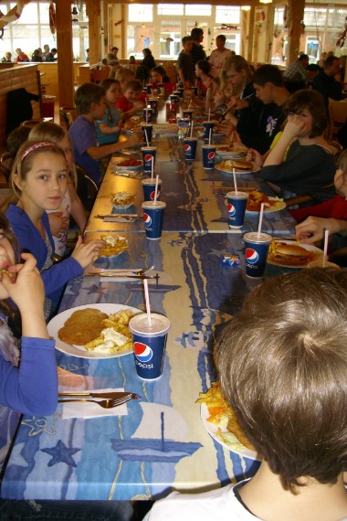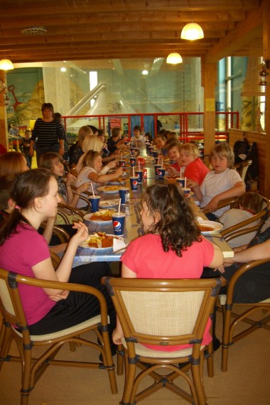 Süßigkeiten und ausreichenden Getränken versorgt. uch das gemeinsame Mittagessen
