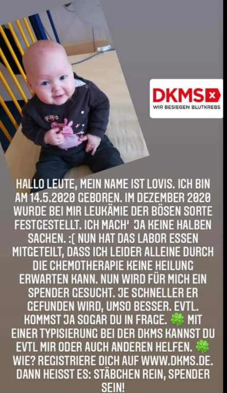 der an Leukämie erkrankten kleinen und erst 11 Monate jungen Lovis aus Esens unterstützt.